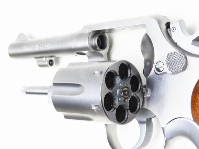 バレル左にはSMIITH & WESSON、右側には38 S&W SPECIALの刻印があり、またマズルにはライフリングも再現されています。