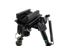 ライフルなど長くて重い銃に使用するバイポッド。長さは6段階に調整でき、レイルマウントに取り付け可能。カッチリ銃を固定できるハリスタイプ。左右に傾けられるスイング機能付き。