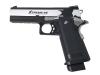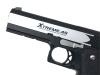 ハイキャパ エクストリームは、ハイキャパ4.3をベースに、セレーションや刻印、カラーリングを一新。随所に硬質クロームメッキで仕上げたシルバーのパーツを配し、フルオートの迫力にスタイリッシュさをプラスした1挺になっています。