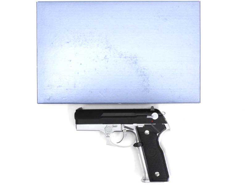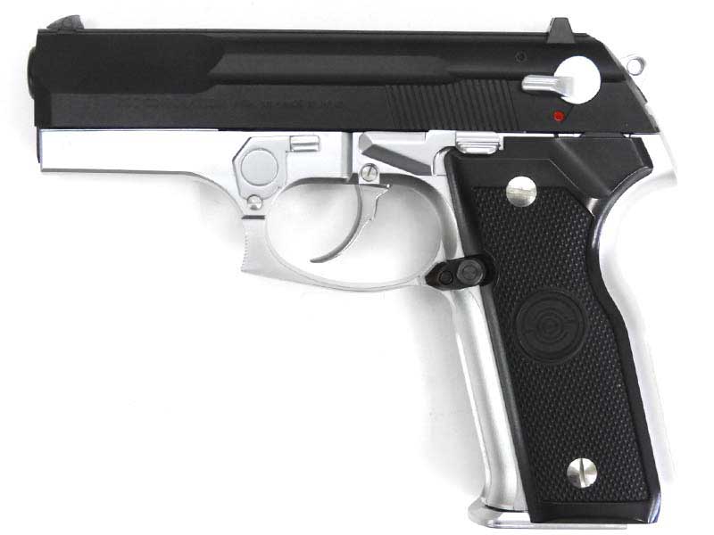 ク-ガ-後期型をモデルとして西アジアから東ヨーロッパ諸国で多数生産されているクローンピストル。フレームがシルバー、スライドグリップはブラックのデュアルトーンモデル。