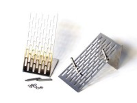 1セット2枚組みで縦置き・横置き可能。ローレットナットの採用により、ピンの位置決めが工具不要で容易になりました。