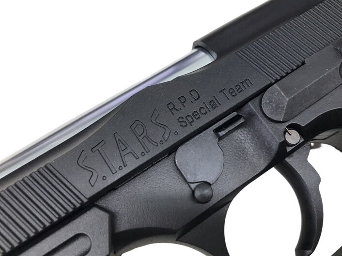 ・グリップには《S.T.A.R.S.専用ゴールドメダリオン》を装備。メダリオンは、バリー・バートンを象徴するカラー「レッド」でアレンジしている。