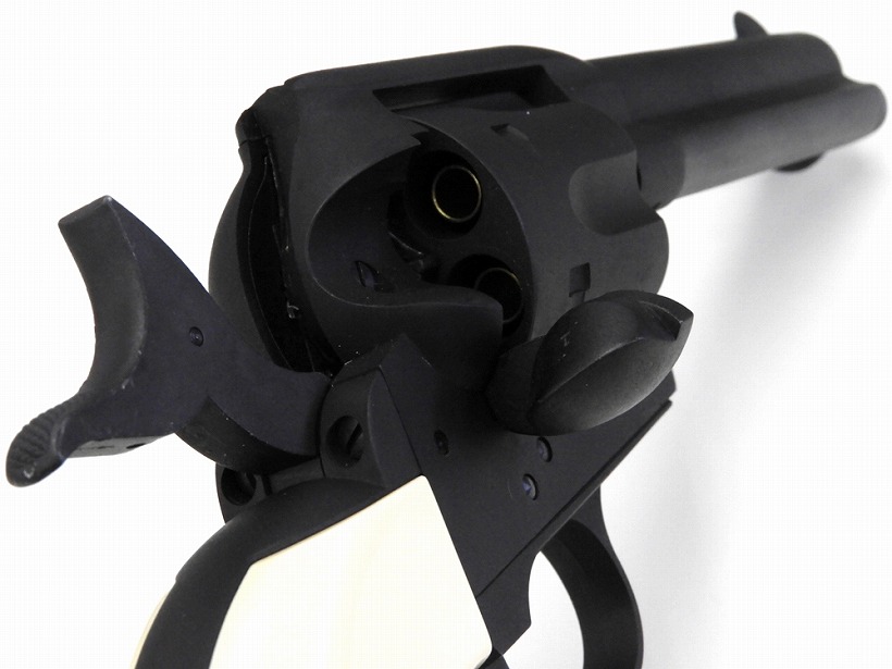 シングルアクションアーミーのうち民間向け.44-40口径モデルの「フロンティア・シックス・シューター」。シックス・ガンとも呼ばれた西部劇に欠かせないアイテム。マルシンから登場したカート式リボルバー、HWモデル。