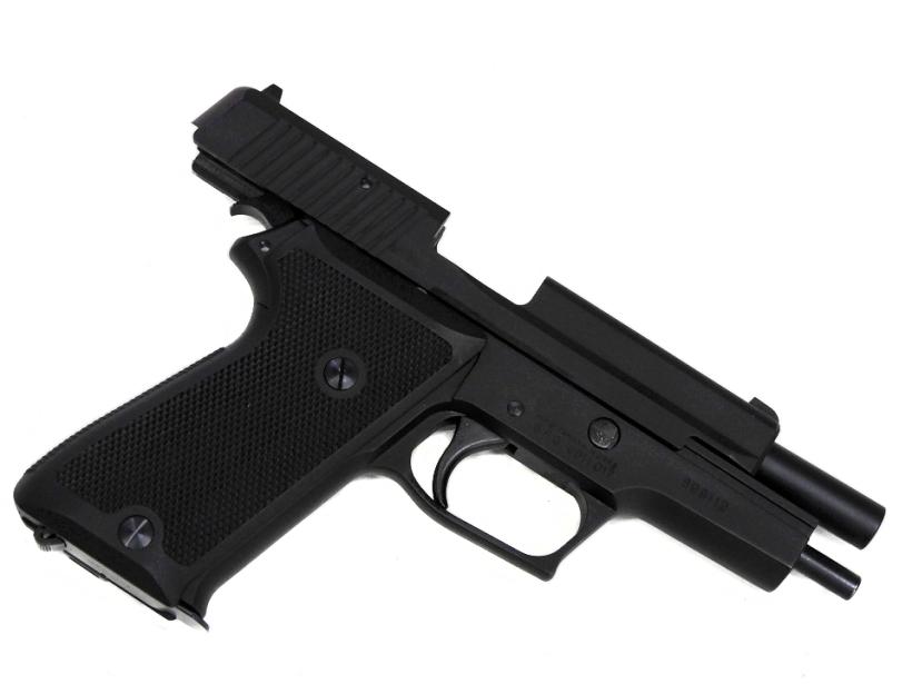 SIG社のP220をライセンス生産して自衛隊にて制式採用されているモデル。「ミネビア9mm自動拳銃」「9mm拳銃」と呼ばれる。スライドに 航空自衛隊仕様-桜のマークの横に翼の刻印が入っている。