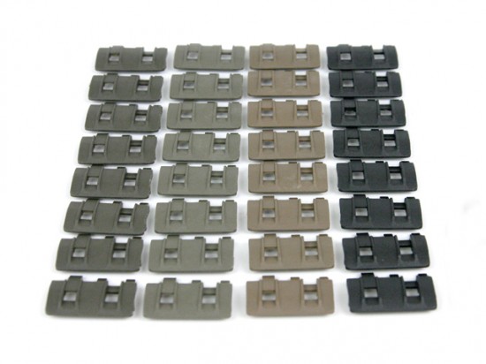 幅20mmのレイル対応、レイル保護用カバー。BK/DE/OD/FGの各8枚セット(計32枚)。4色ミックスなのでいろいろな組み合わせが可能。