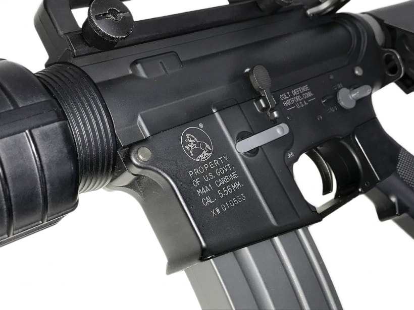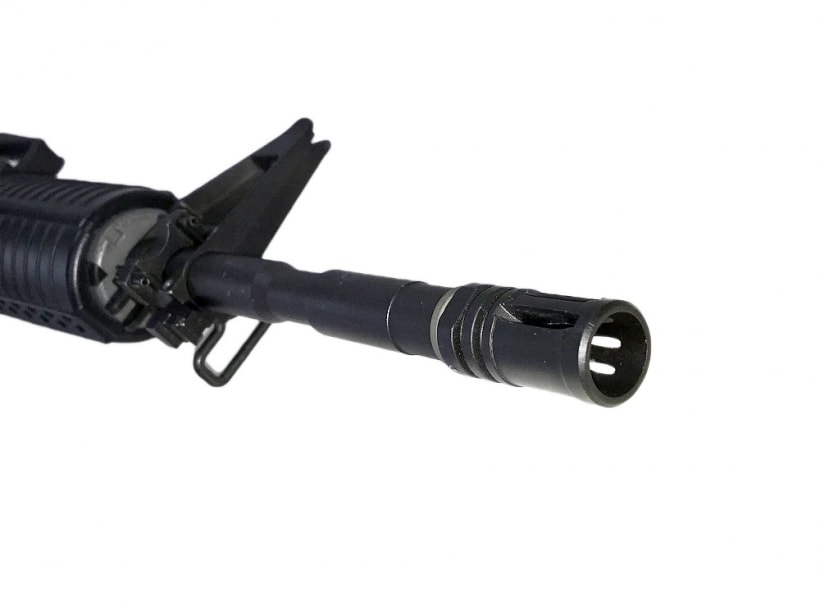 ●アッパーレシーバー上部にピカティニーレール。マズル部分にはM14逆ねじを標準で備えます。