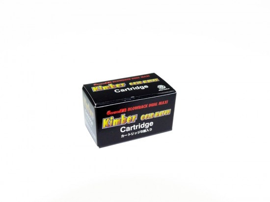マルシンのキンバーゴールドマッチ DUAL MAXI用スペアカートリッジ。6mmBB弾を装填して使用し、リアルなアクションが楽しめる。
