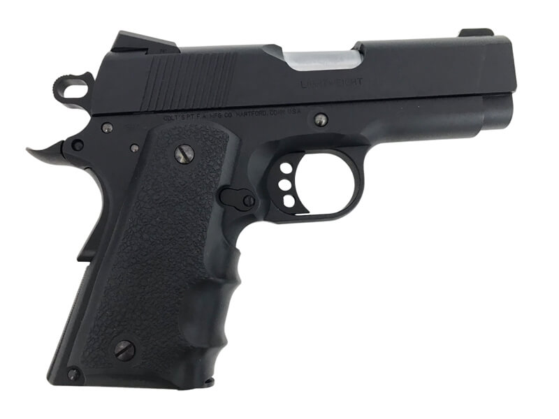 コルト・コンパクトカスタムの決定版ともいえるディフェンダーモデルは、短く切り詰められたスライド&フレームに、ロングリコイルスプリングガイド/ノバックタイプリアサイト/ビーバーテイルグリップセフティ/3ホールトリガーといった、タクティカル装備を搭載した。