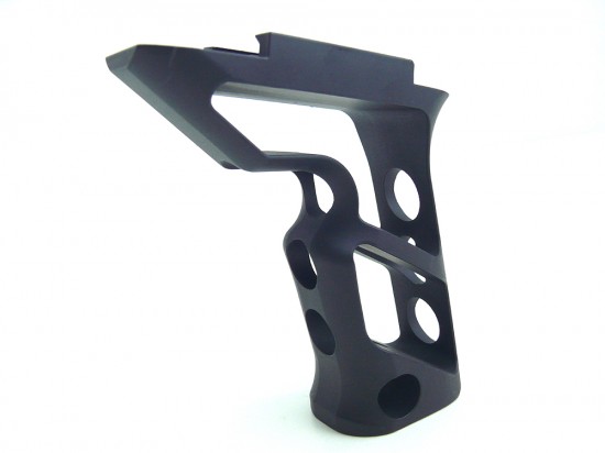 軽量化のために徹底的に肉抜きされた姿が見た目にも洗練されたアングルドグリップ。