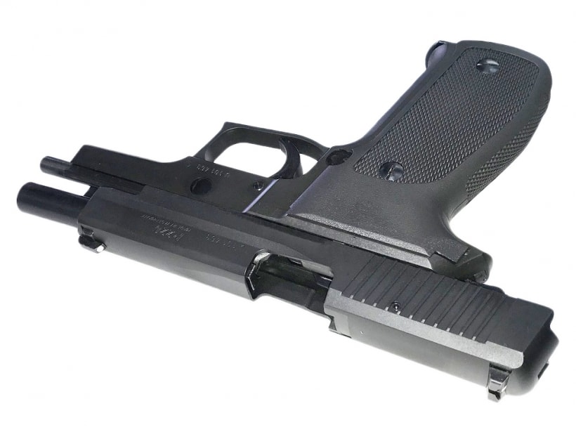 新規金型によりピカティニーレイルのないP226初期モデルが再現されています。発火カートリッジは5発付属。