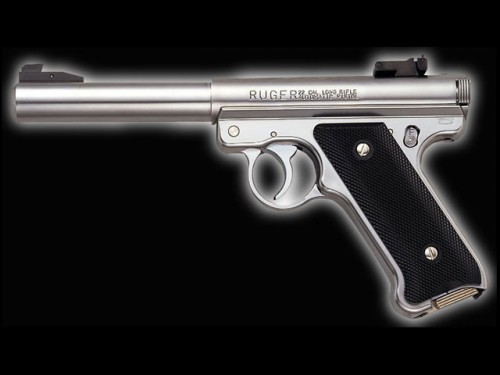 ダブルアクションで発射する固定スライドガスガン。スタームルガー社のMk1ピストルは、スポーツ、レジャー用に最も成功した小口径ピストル。安定した射撃のために太くされたブルバレルモデル。上下調整可能なリアサイトを装備。
