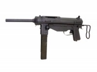 1942年にアメリカ軍が制式採用した短機関銃。形状が機械に潤滑油(グリース)を挿す機材に似ていたため「グリースガン」と呼ばれる。ハドソン製、ガスブローバックガン。ABSモデル。