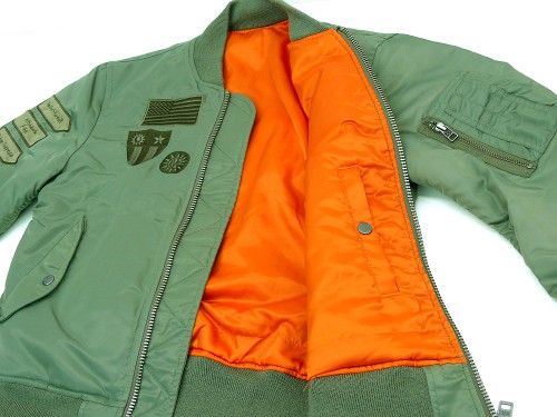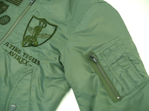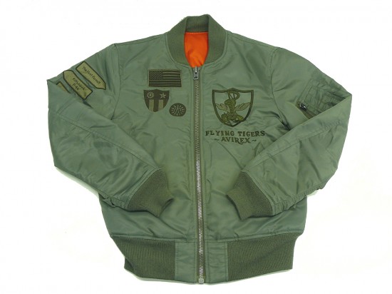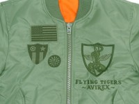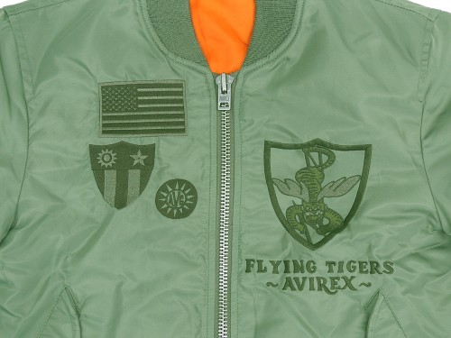 MA-1コマーシャルバージョンをさらに進化させたアビレックスMA-1のフライングタイガーは、シングルファスナーを使用したモデル。