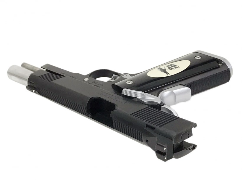 劇中、傭兵部隊のリーダー”バーニー・ロス(シルベスター・スタローン)”が使用するムービーガンをモチーフに、キンバー社のハイグレードモデル「ゴールドコンバットII」をフルカスタム。