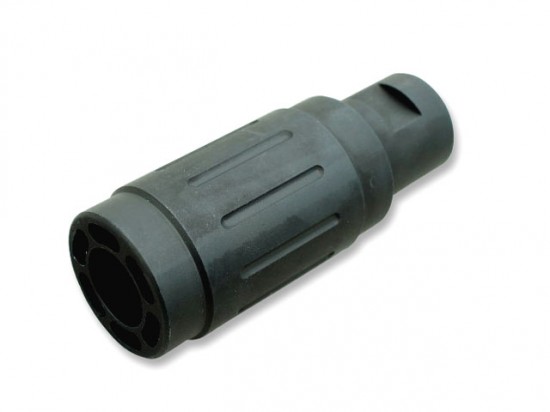 Hera Arms社製コンペンセイターのトイガン用レプリカ。フローティングハンドガード内にフラッシュハイダー、コンペンセイターを収めてしまうスタイルがエスカレート、ハンドガードの内径とほとんど同じサイズに大型化し、強いインパクトを持った外観となっています。