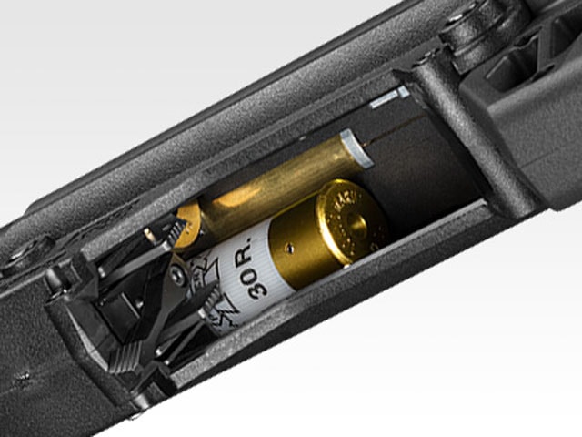 本物を採寸することで細部まで再現性を高めた外装に、3発⇔6発切替えシステムをはじめとするガスショットガンならではの機能を搭載。オーソドックスなスタイルのショットガンとはまた一味違った使い勝手が楽しめます。