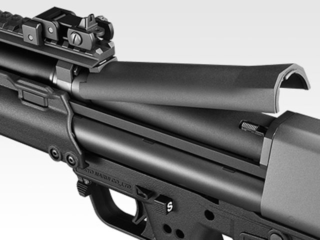 フリップアップ・サイト:折りたたんだ状態でもサイティングが可能な、フリップアップタイプのフロント/リアサイトを搭載。マウントレイルを介して装着されているため、取り付け位置の変更や脱着も可能です。