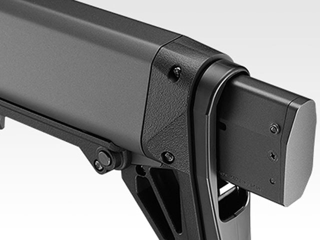 独特な外観と質感を再現:アウターバレルやレシーバー、レイルなどに金属素材を、グリップやフォアエンド、ストックなどには樹脂素材を採用。ホンモノのような質感とゲームユースにも安心の剛性を実現しました。また、実物から採寸することで、外装パーツの細部まで再現性を高めています。
