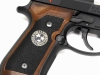 マガジンはこれまで同様「M92Fミリタリーモデル」マガジンを使用可能。内部エンジンはM9A1やU.SM9ピストルベースで性能は格段にUP!!S.T.A.R.S.刻印入りのブリガーディアスライドや、ウッドタイプ&ラバータイプのメダリオン付きハイブリッドグリップ、コンバットリアサイト、シルバーのアウターバレル、ロングスライドストップなど、ハイグレードタイプも外観の特徴はしっかり受け継いでいます。