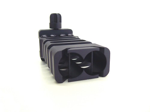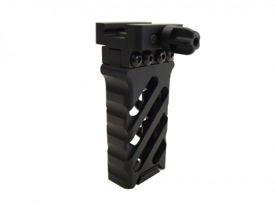 20mmレイル対応のメタルフォアグリップ。金属製にもかかわらず徹底した肉抜きにより超軽量。内部にCR123Aを4本収納可能。