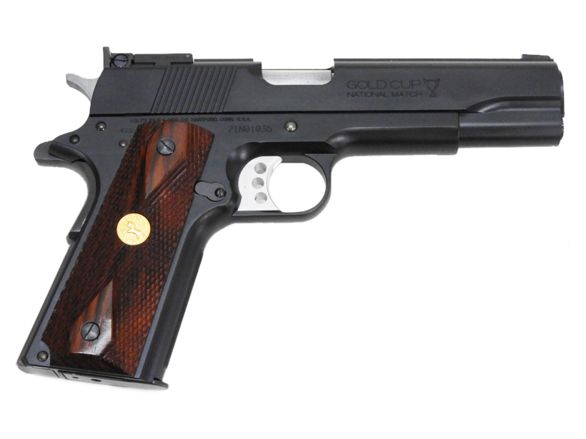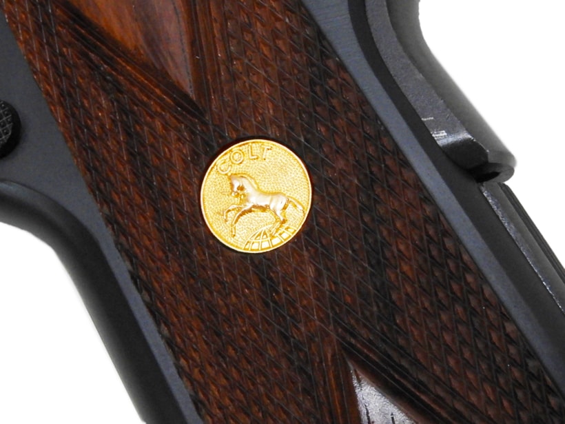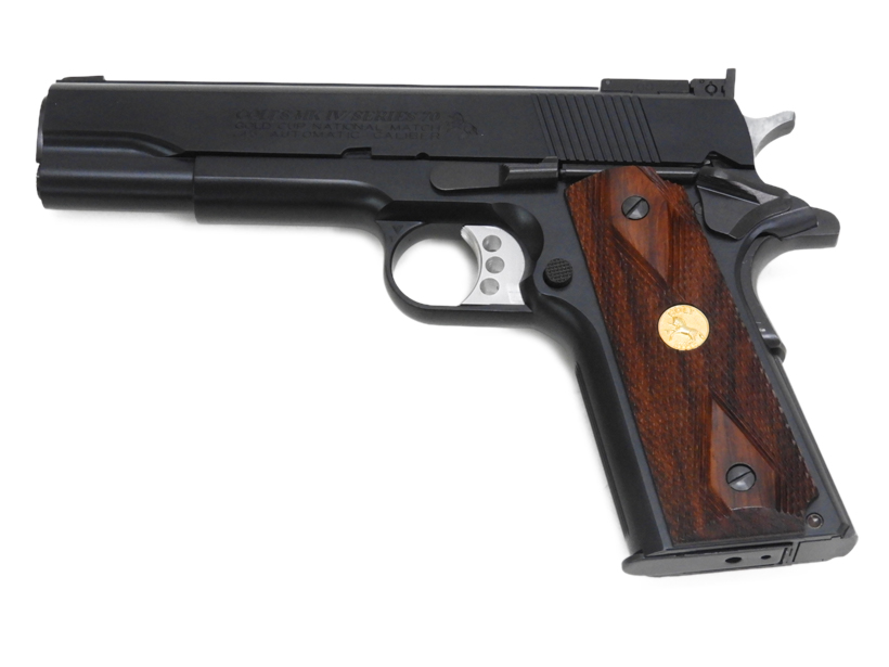 コルトハンドガンの最高峰として君臨した名銃、ゴールドカップ・ナショナルマッチが伝統のスタイルそのままにモダナイズドされた、2015バージョンとして蘇りました。無垢のアルミ材から削り出され、フレームにフィッティングされた”3ホールワイドトリガー”をはじめ、機械加工によって取付けられたフロント&リアサイト、ブラスメダリオン入りヘレッツ社製木製グリップ等々見所満載のモデルです。美麗な黒染め仕上げにてお届け致します。