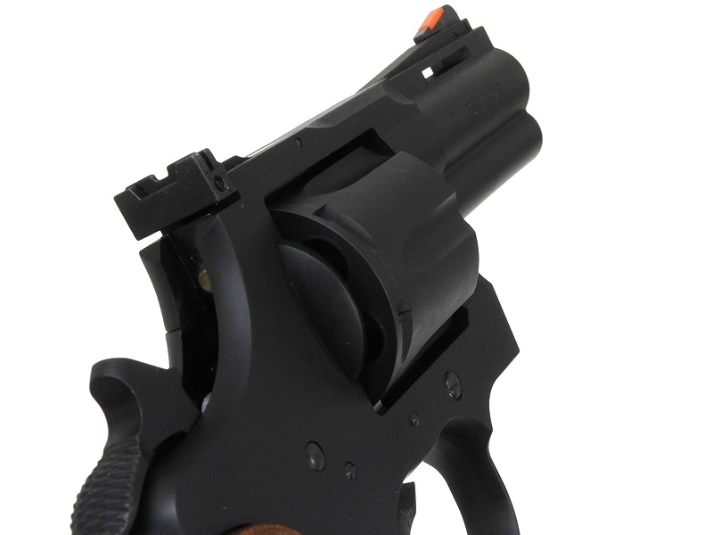最大の目玉は、すなわち実銃コルトパイソンと同様の連結方式を採用したトリガー。結合外れもなく、リアルでスムーズな動作で、難しいと言われるコルトアクションが見事に再現されています。また、製造時の個体差や、繰り返しの使用による摩耗で発生する事があった動作不良が、かなり起きづらくなりました。