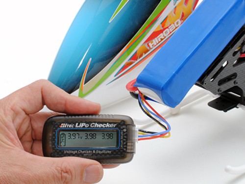 [Hitec] LiPo・チェッカー (中古) 製品詳細画像3 接続するだけの簡単設定。機体に搭載したまま測定可能!