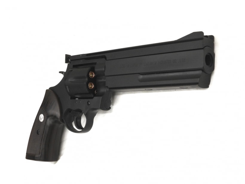 コルト・アナコンダをベースにしたマルシン工業オリジナルデザインカスタムリボルバー、「コンストリクター」。 新仕様のリアルXカートリッジ付属にグレードアップした6mmBB弾仕様、Xカートリッジモデル。重さや質感などにこだわる人向けのHW ブラックモデル。コルト正式ライセンスモデル。