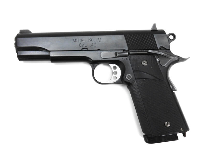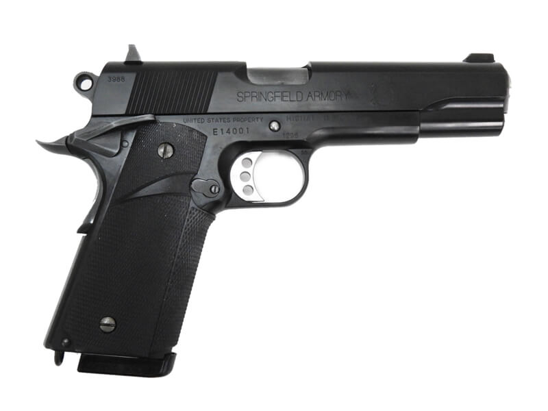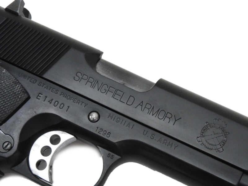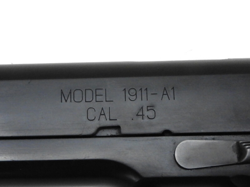 コルトのM1911A1フレームに、スプリングフィールドアーモリーのスライドが組み合わされて製作される「MEU(SOC)ピストル」を、各部の刻印に至るまで精密に再現。