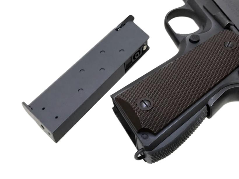 仕上げは、WAファクトリーのビンテージフィニッシュ専任者による丁寧なポリッシュ。軍用拳銃らしい荒々しさを表現するともに、使い込まれたパパの拳銃らしいイメージを再現しています。