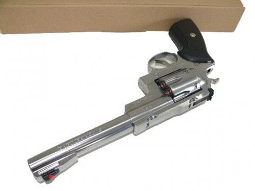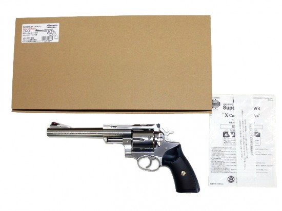 スタームルガー社が誇る大型ダブルアクションリボルバー、レッドホーク。 リアルXカートリッジ仕様にグレードアップされた新仕様のスーパーレッドホーク。6mmBB弾仕様。7.5インチステンレスシルバーモデル。