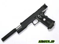 サイレンサー風のジャケット内部にまでバレルが延長されたモデル。グルーピング性能が高い。さらにバレル長を稼ぐ6インチ。初速計測1J以下を確認済み。