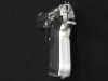 スライドサイドが大胆にカッティングされていますが、これはM92の最初期(1975年)のシリーズの特徴。複列弾倉化にともなう重量増加の打開策として行われていた「ステップスライド形状」を復活させたものです。 さらに前後のサイトはシルバーのタイプから、より実践的にスナッグプルーフされたものに変更されています。