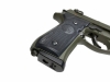 20mm規格のアンダーレール/しっかりとした角型トリガーガード/グリップ後部のハイグリップ加工/グリップ前後に施されたチェッカリング等M92FS系バリエーションモデルの良い所を全部詰め込んだ究極のスタイルになっている。深めの緑の中に黒のパーツが映える1丁。
