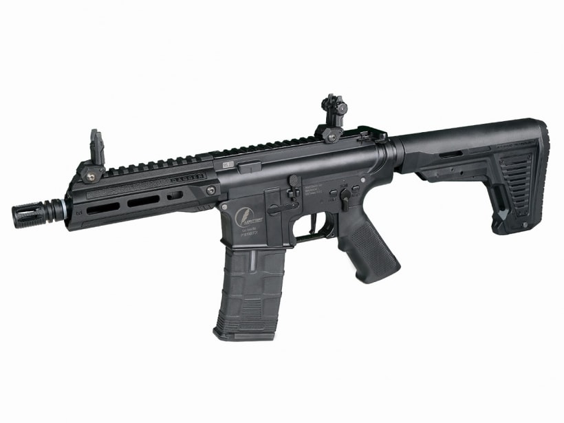 モーターの力で空気を圧縮してBB弾を発射する電動ガン。ガスガンが苦手とする冬期の仕様やフルオート連射もバッチリなのが大きなウリです。海外では既に当たり前となった電子トリガー・Lipoバッテリー仕様に対抗して、日本からも東京マルイが温度センサーを始めとした安全機構を満載したMS・Li-Poバッテリー仕様のM-PLUSシステム電動ガンを発売しています。